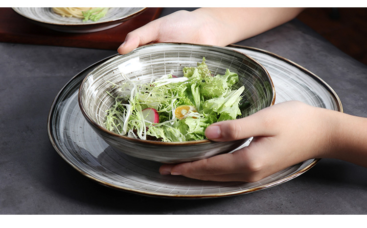 จานชามซุป 420 มล. จานพาสต้าสโตนแวร์แบบชนบทจานพาสต้าจานอาหารค่ำสำหรับร้านอาหาร
