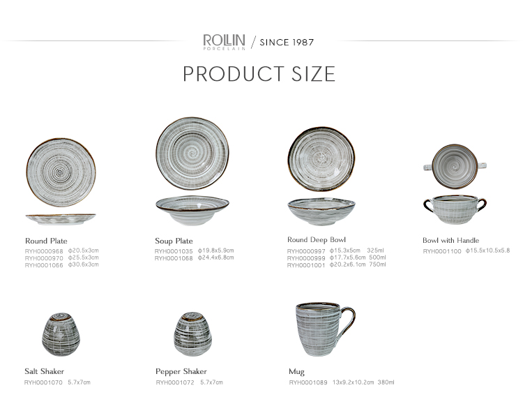 เครื่องใช้บนโต๊ะอาหารภายใต้เคลือบสโตนแวร์ เครื่องครัว จานพอร์ซเลนและจานชาม จานอาหารค่ำทรงกลม