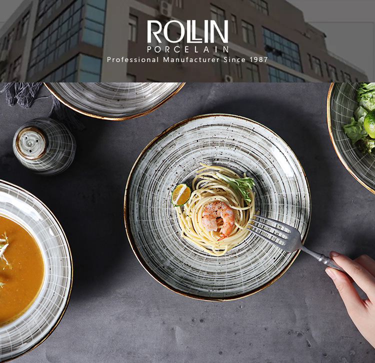 สโตนแวร์เสิร์ฟจาน Rollin Porcelaine Round Plates Steak Plate Restaurant