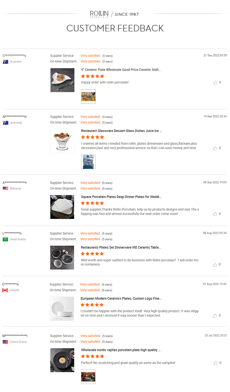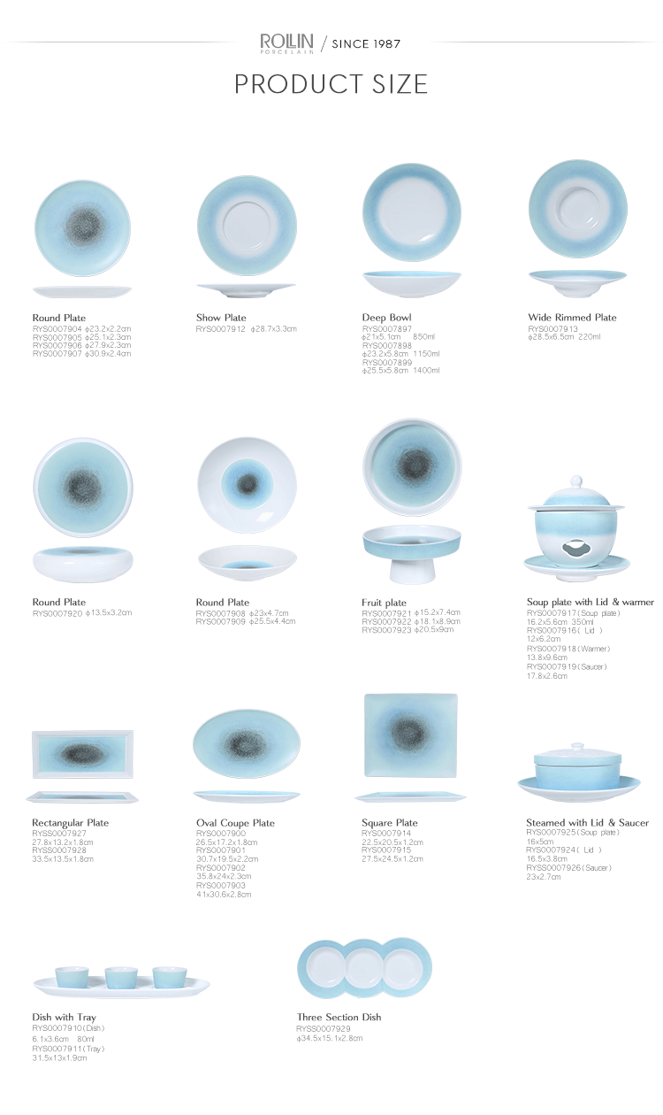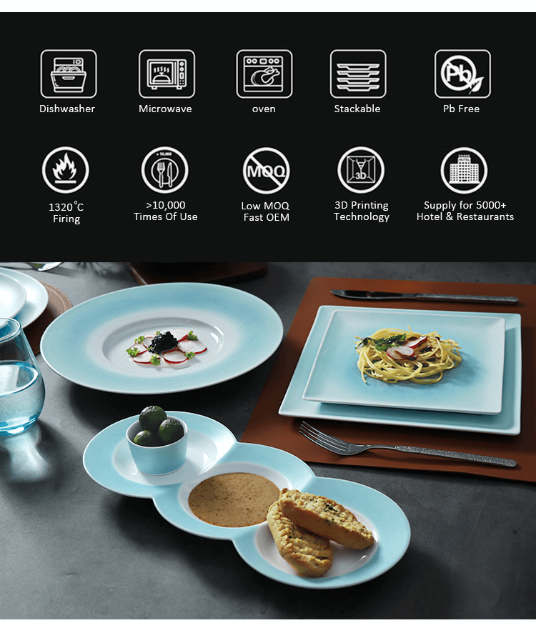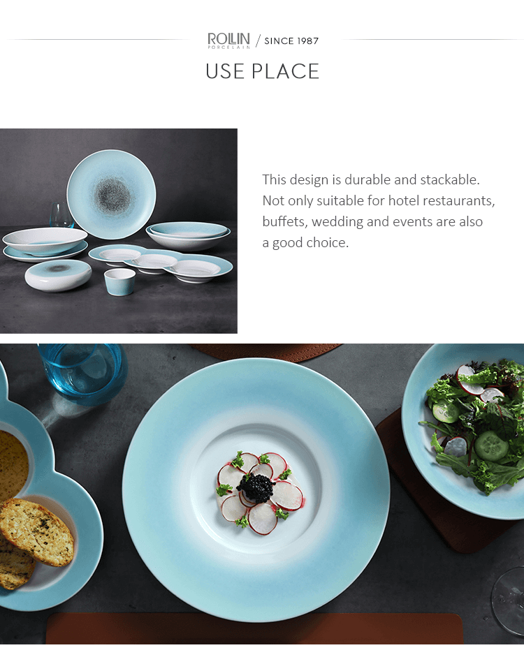 ชุดภาชนะสำหรับอาหารเย็นนี้มีความทนทานและวางซ้อนกันได้ไม่เพียงแต่เหมาะสำหรับร้านอาหารในโรงแรม บุฟเฟ่ต์ งานแต่งงานและงานอีเวนต์เท่านั้น ยังเป็นทางเลือกที่ดีสำหรับครัวและขายส่งที่บ้านอีกด้วย